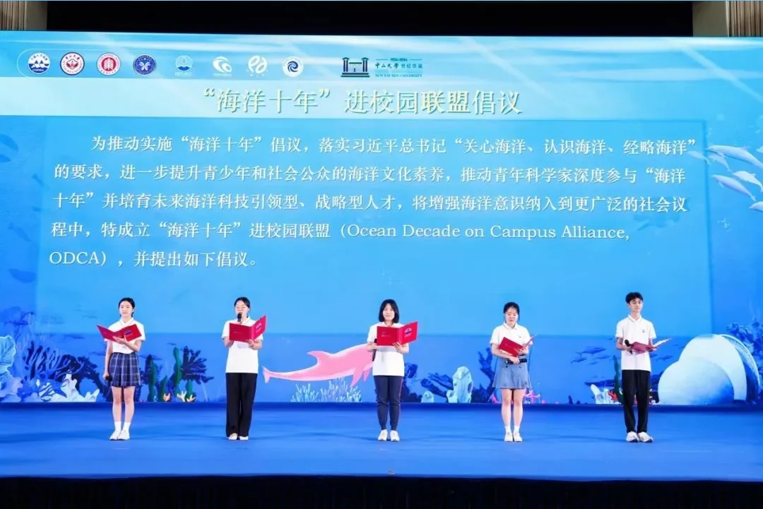 联盟首次发出共同倡议。华东师范大学、中山大学、珠海市第八中学、广东实验中学金湾学校附属初中等师生代表共同宣读联盟倡议。倡议内容包括:深化和创新海洋科普教育,以丰富多彩的形式提升青少年海洋素养;积极推广“海洋十年”,为青年科学家提供更广袤的发展平台;联合各利益攸关方,建立广泛合作网络。